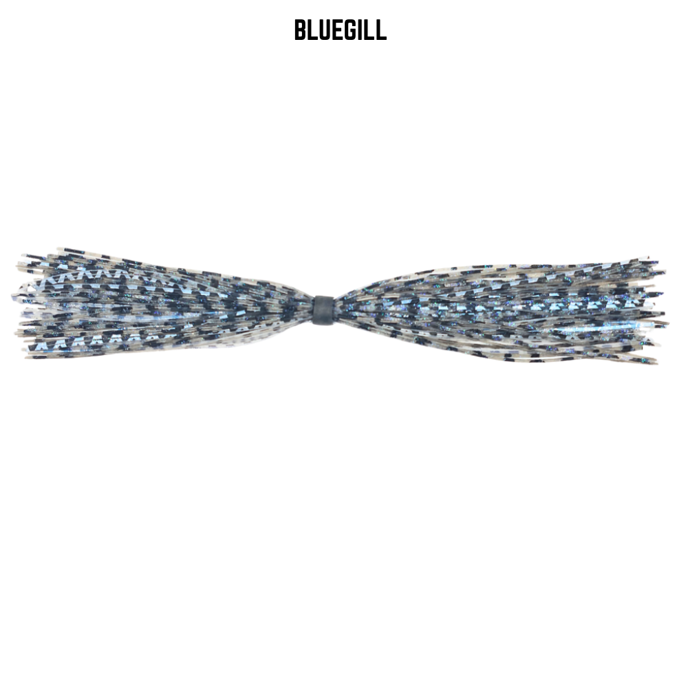 This clear, black, gray, blue, and bluegill banded skirt creates a natural baitfish‑inspired profile that excels in clear to lightly stained water and around vegetation, docks, and open‑water structure. The premium silicone strands pulse and flare with lifelike action, giving your jigs and spinnerbaits a subtle yet highly realistic presentation that mimics shad, bluegill, and other common forage.