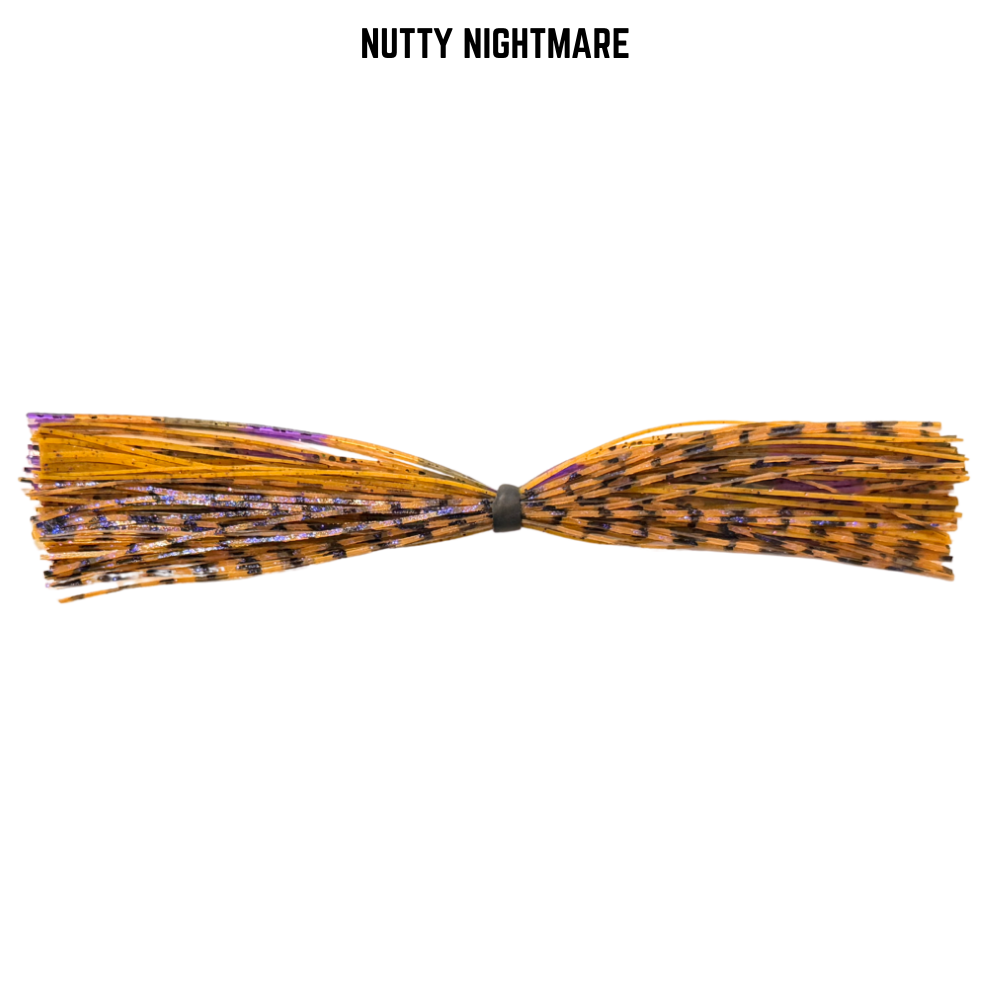 This peanut butter and jelly banded skirt blends rich brown tones with deep purple accents, creating a proven color combination for stained water and pressured fish. The premium silicone strands pulse and flare with lifelike action, giving your jigs and spinnerbaits a natural yet bold profile that stands out without overpowering the presentation.