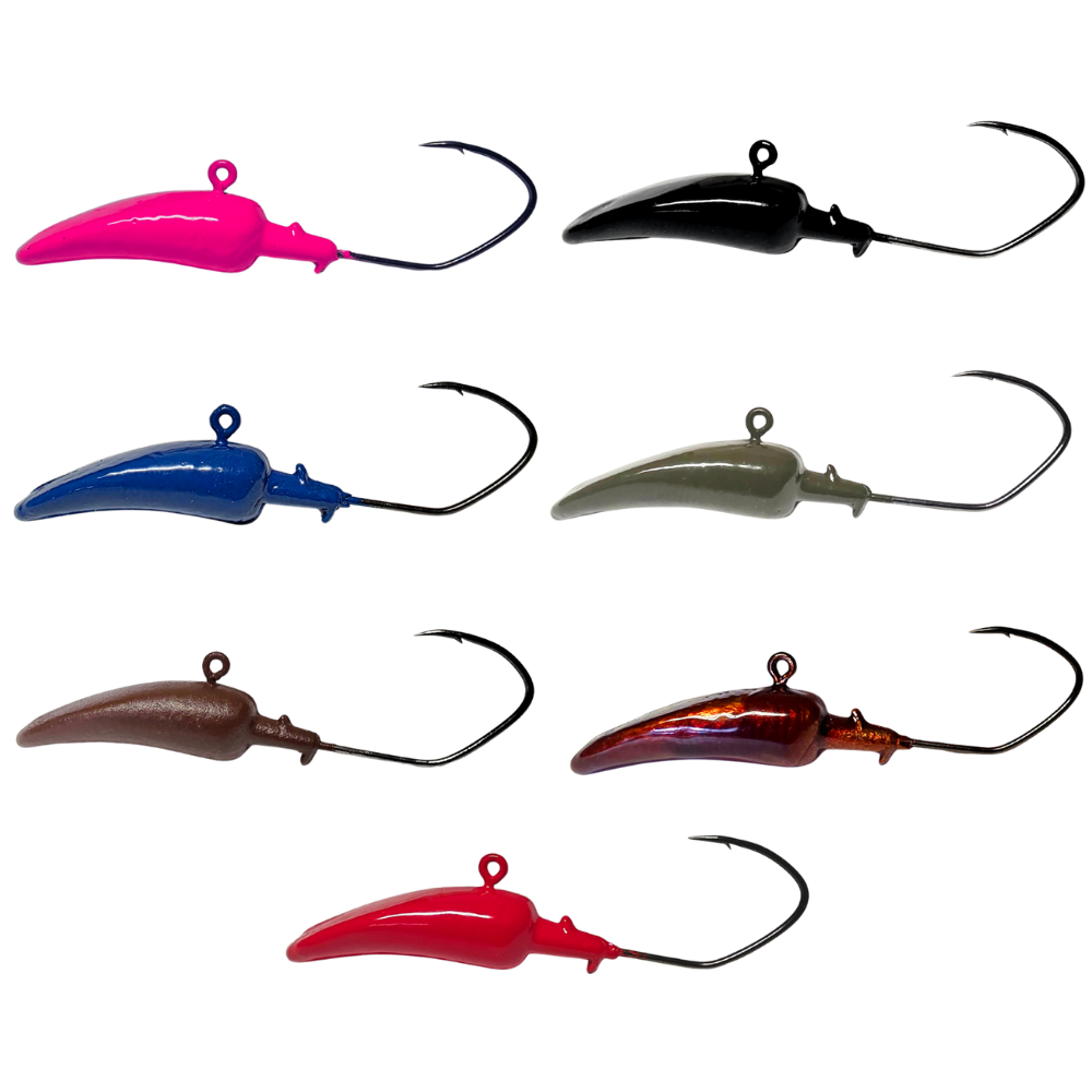 1/8oz ∙ #1 Hook, 1/4oz ∙ 1/0 Hook, 3/8oz ∙ 2/0 Hook, 1/2oz ∙ 3/0 Hook