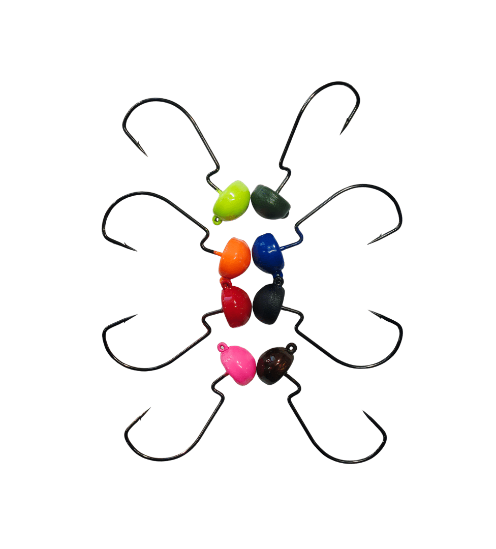 | Weight ∙ Hook Size | 1/8oz ∙ #1 Hook, 5/32oz ∙ #1 Hook, 3/16oz ∙ #1 Hook, 3/16oz ∙ 1/0 Hook, 1/4oz ∙ #1 Hook, 1/4oz ∙ 1/0 Hook, 5/16oz ∙ 2/0 Hook, 3/8oz ∙ 2/0 Hook, 7/16oz ∙ 3/0 Hook, 1/2oz ∙ 3/0 Hook, 9/16oz ∙ 4/0 Hook, 5/8oz ∙ 4/0 Hook |