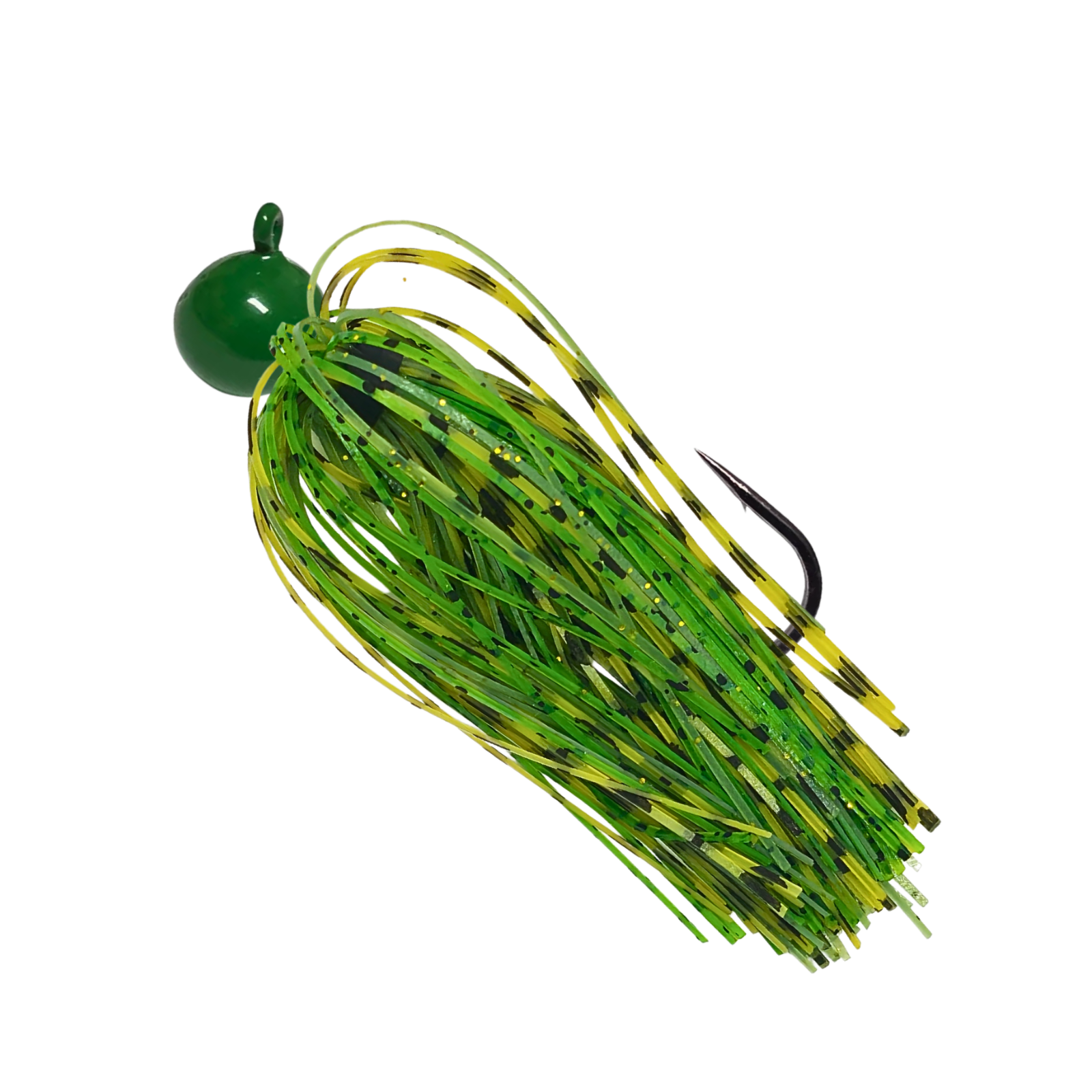 This baby bass green Shake‑It jig head with a chartreuse and green pumpkin silicone skirt delivers a bright, forage‑inspired profile that excels in clear to stained water, especially along rock, gravel, and mixed bottom. The premium silicone strands pulse and flare with lifelike action, giving the jig a high‑visibility yet natural presentation that triggers strikes from both pressured and aggressive bass.