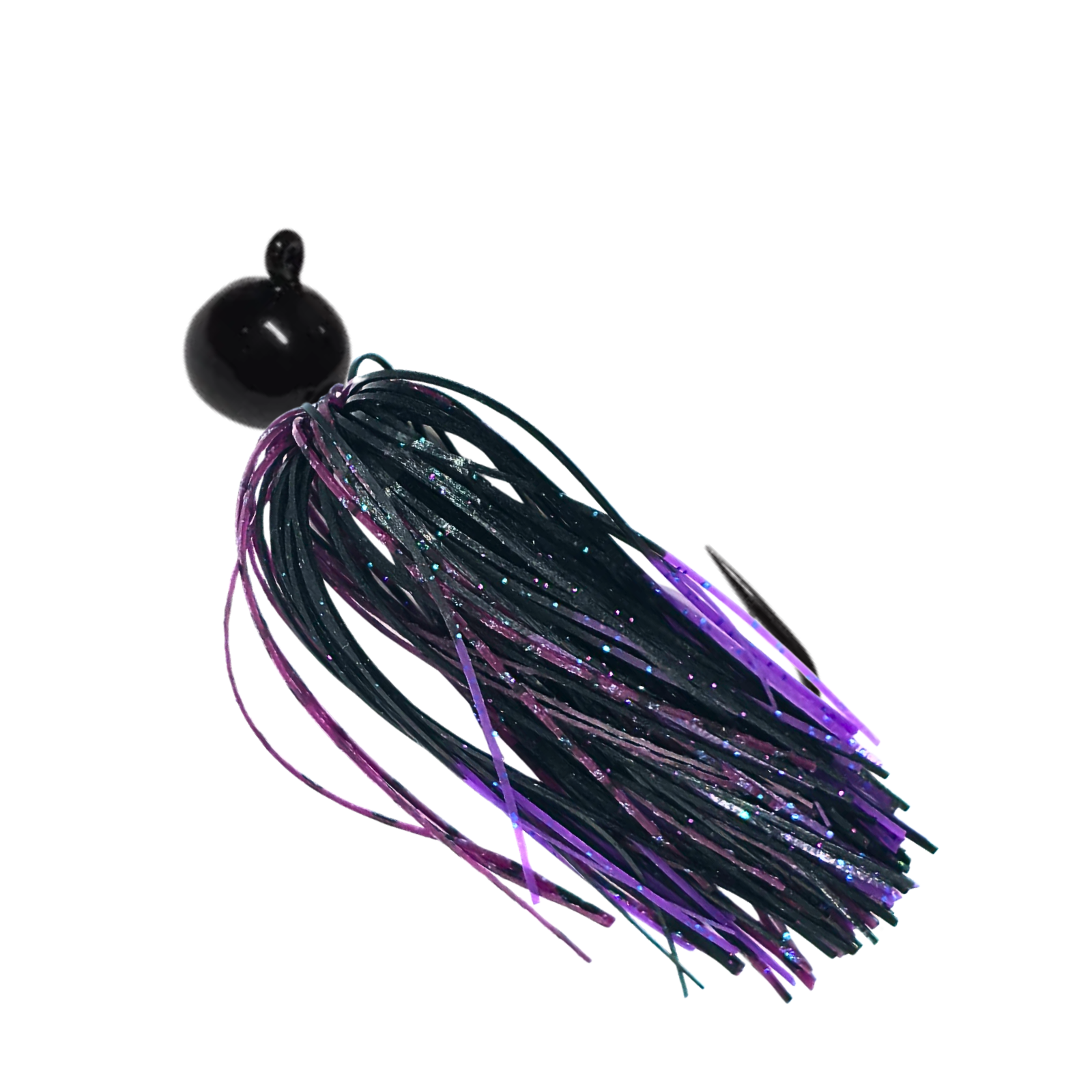 • Black Shake It jig with a black and purple silicone skirt